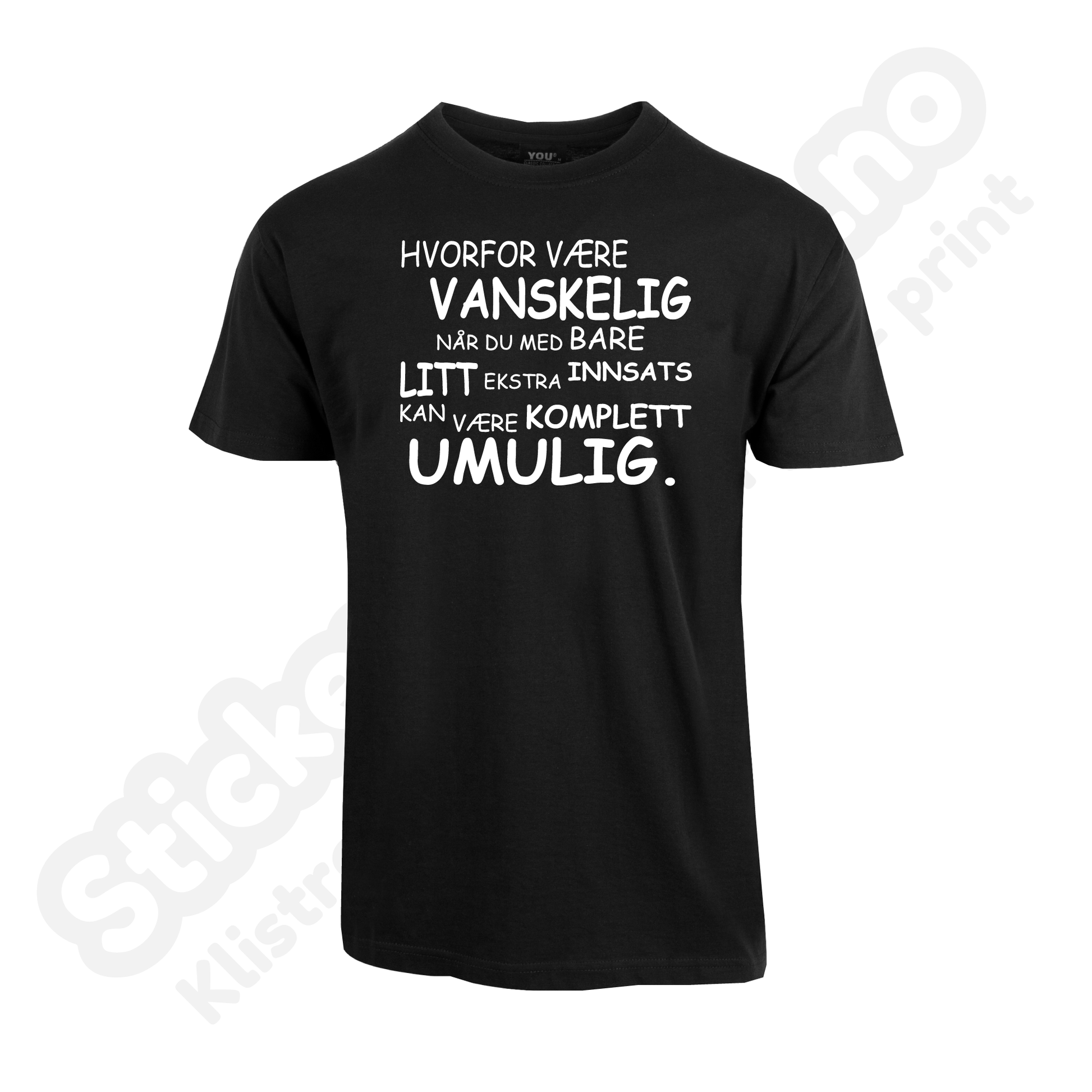 Høy kvalitet og med god passform. Velg ønsket størrelse i menyen og hvor du ønsker trykket.